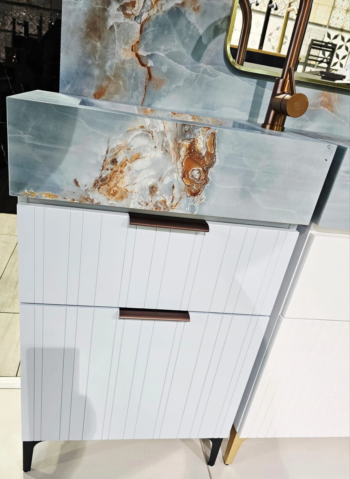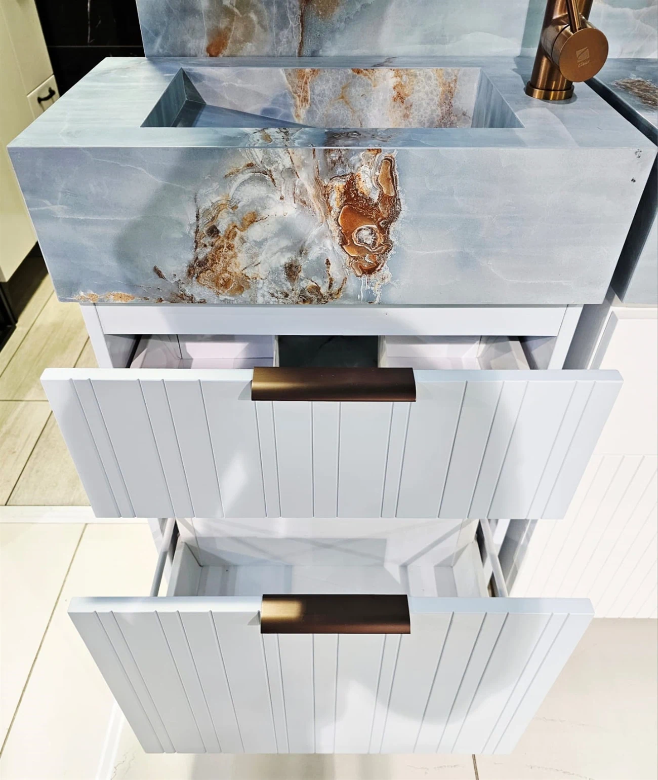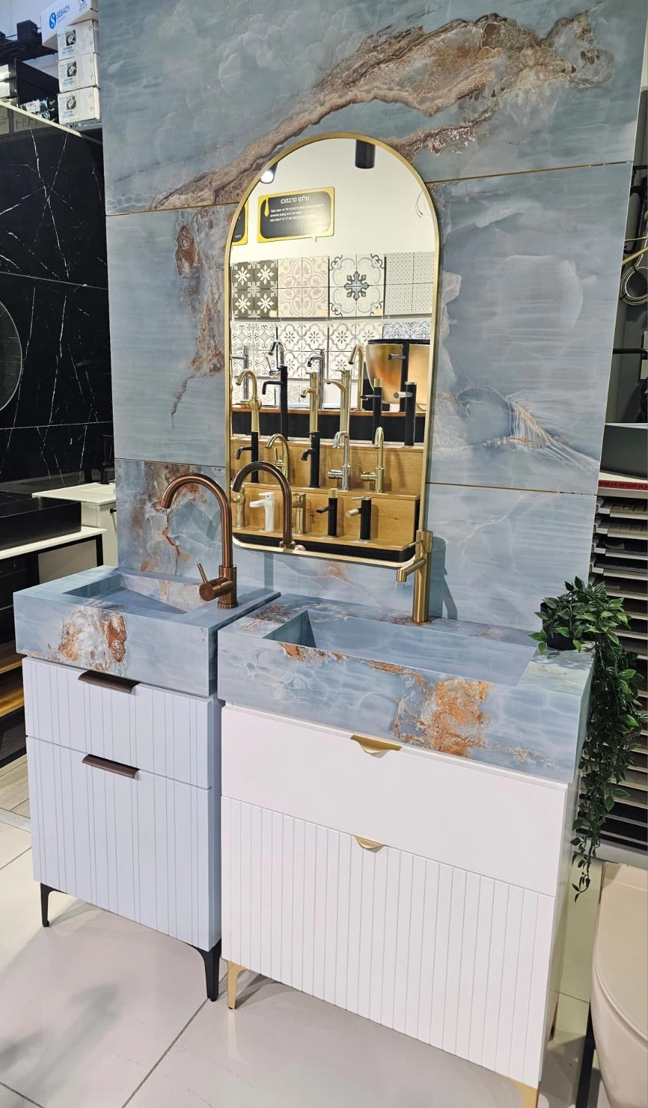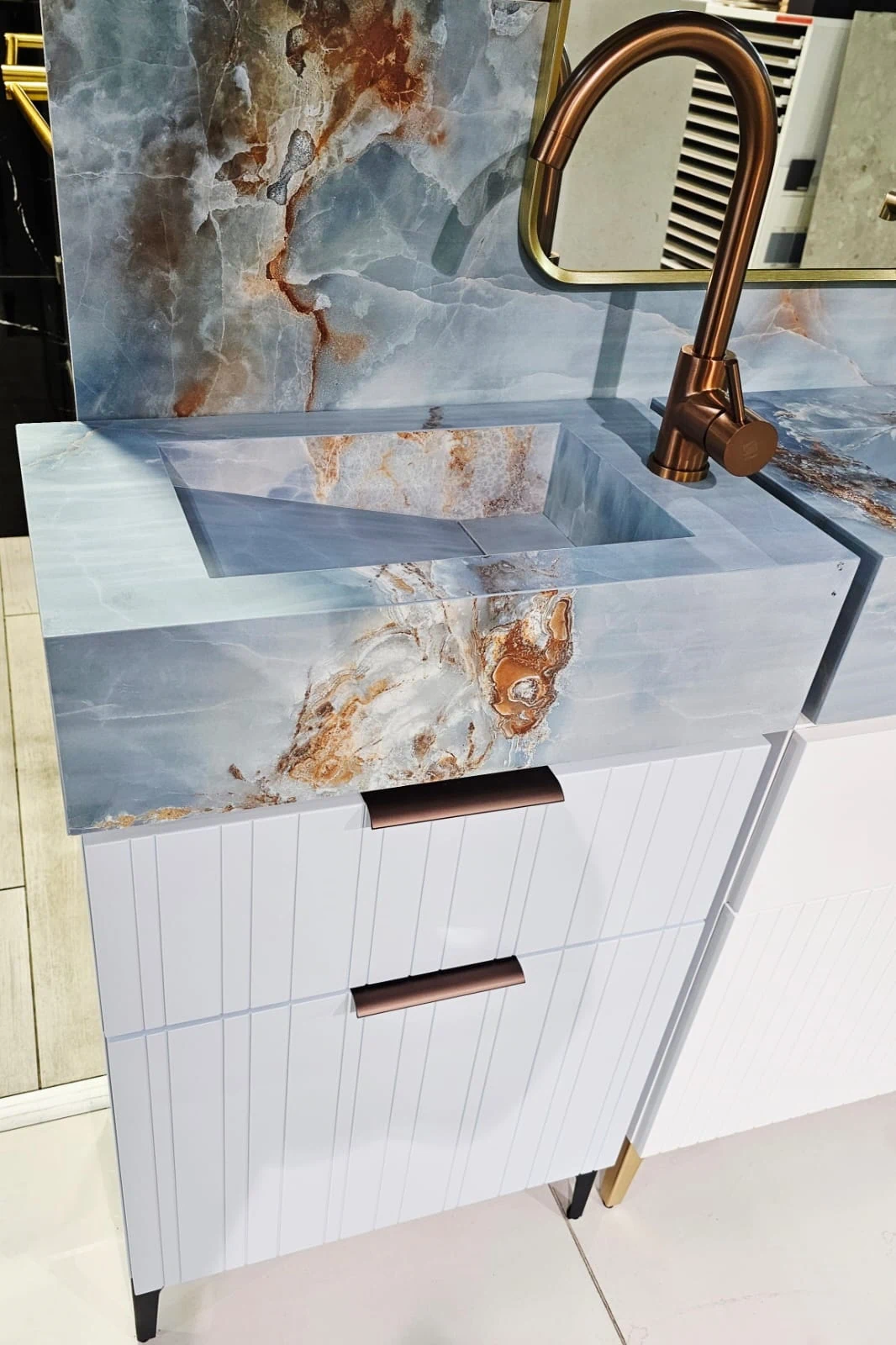 ⚫ כיור שוקת בנוי משיש פורצלן - תכלת מט משויש