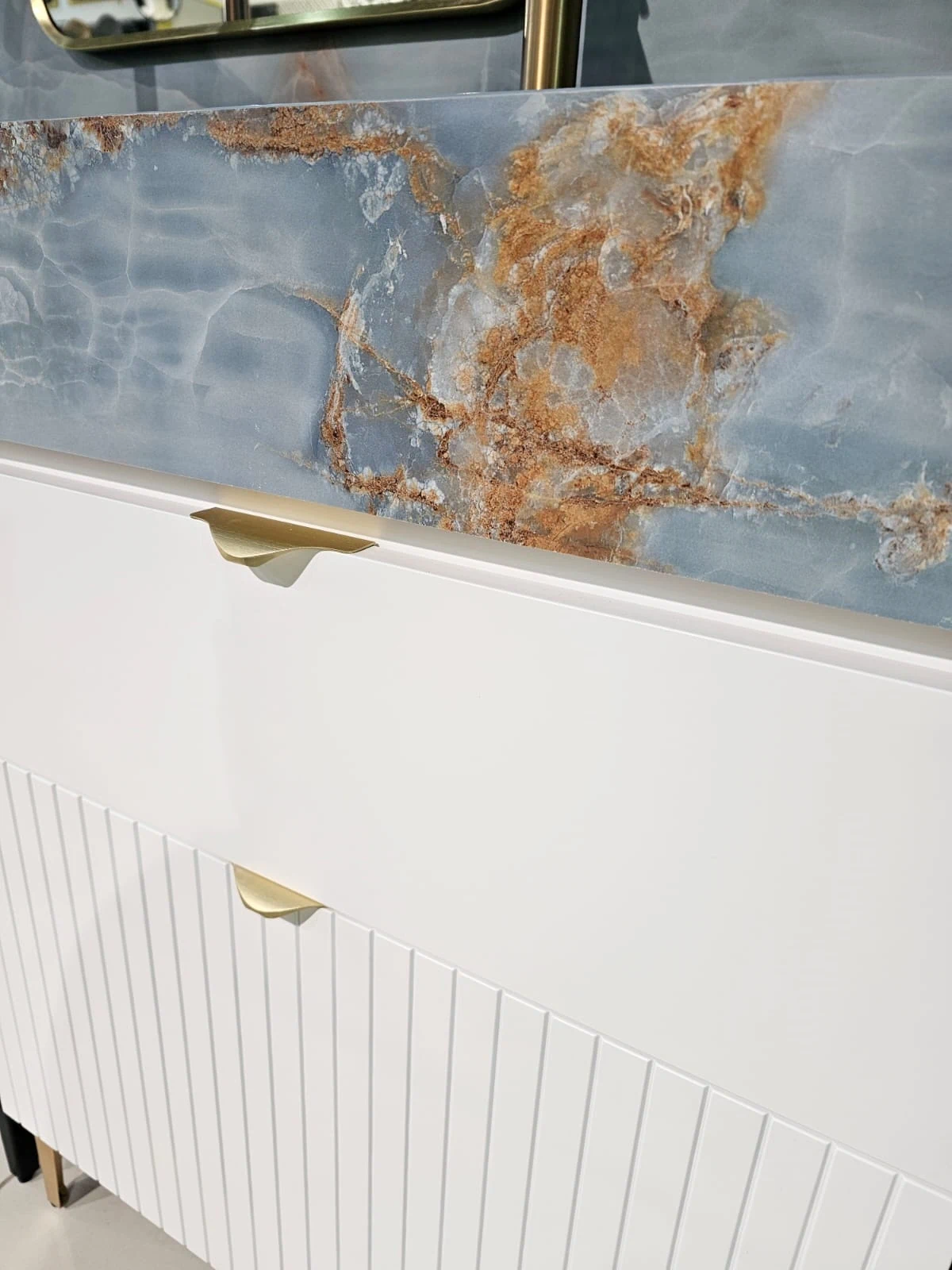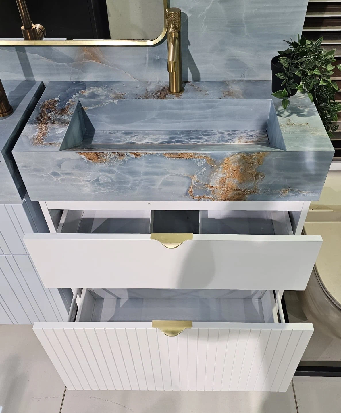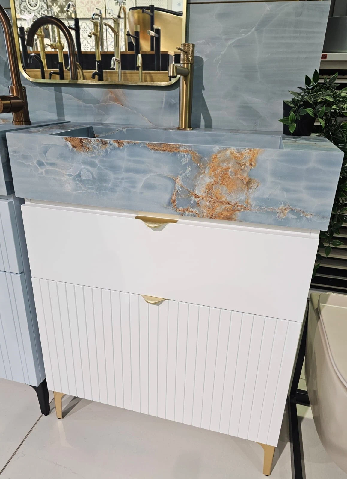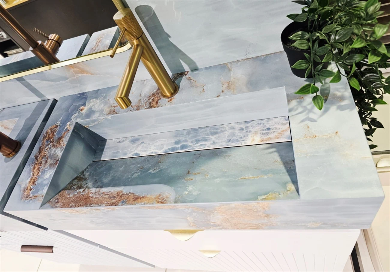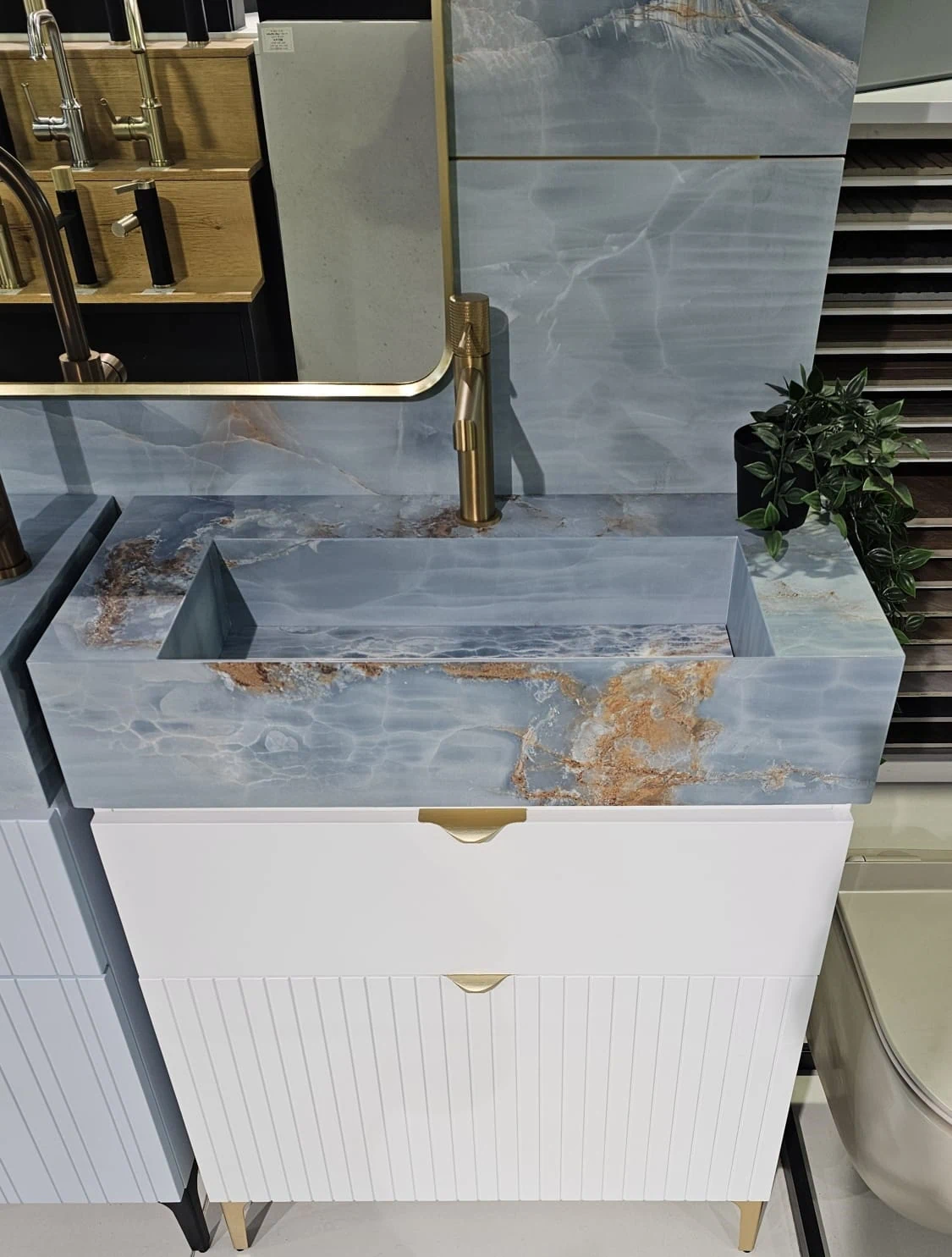 ⚫ כיור שוקת בנוי משיש פורצלן - תכלת מט משויש רוזגולד