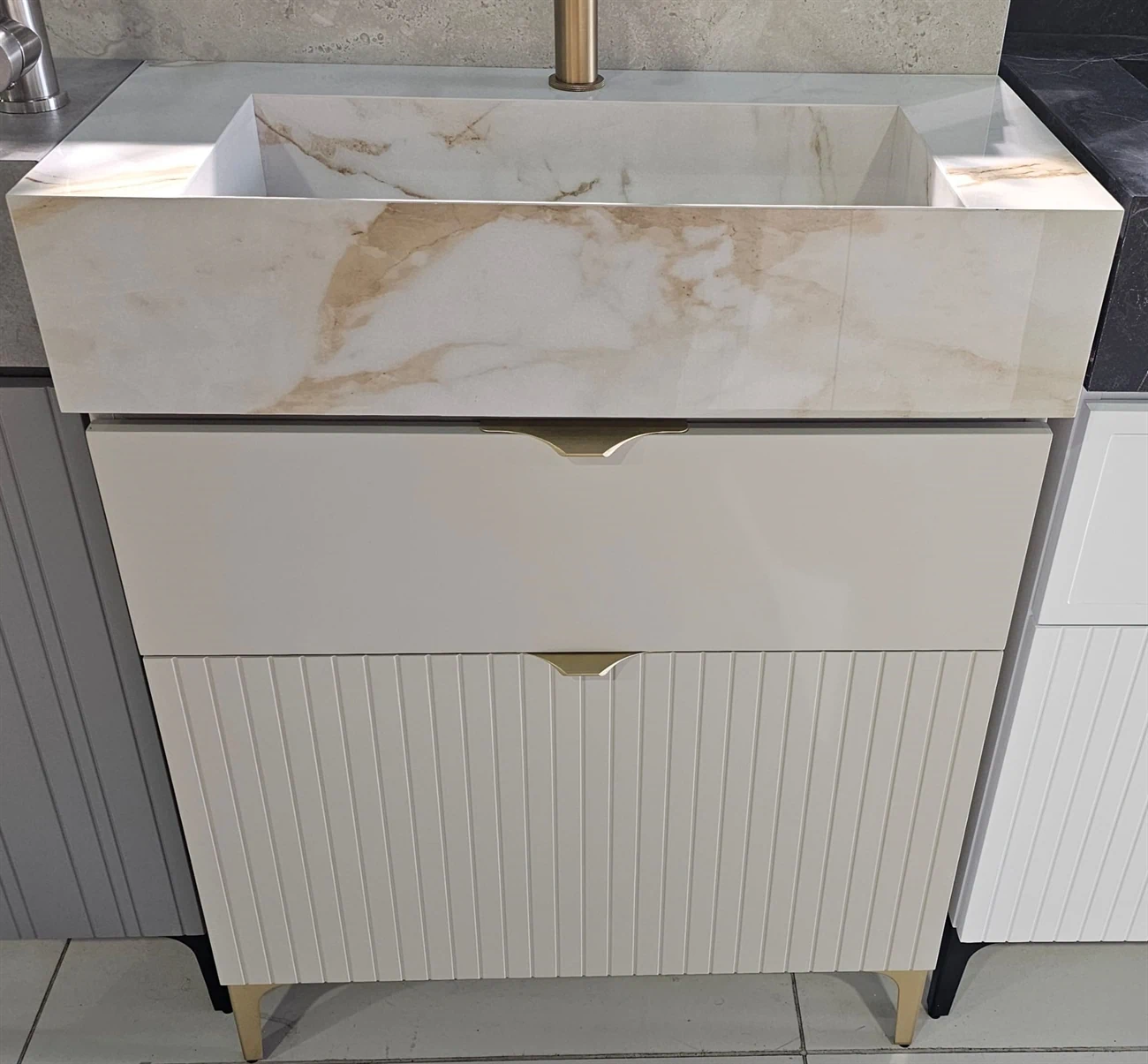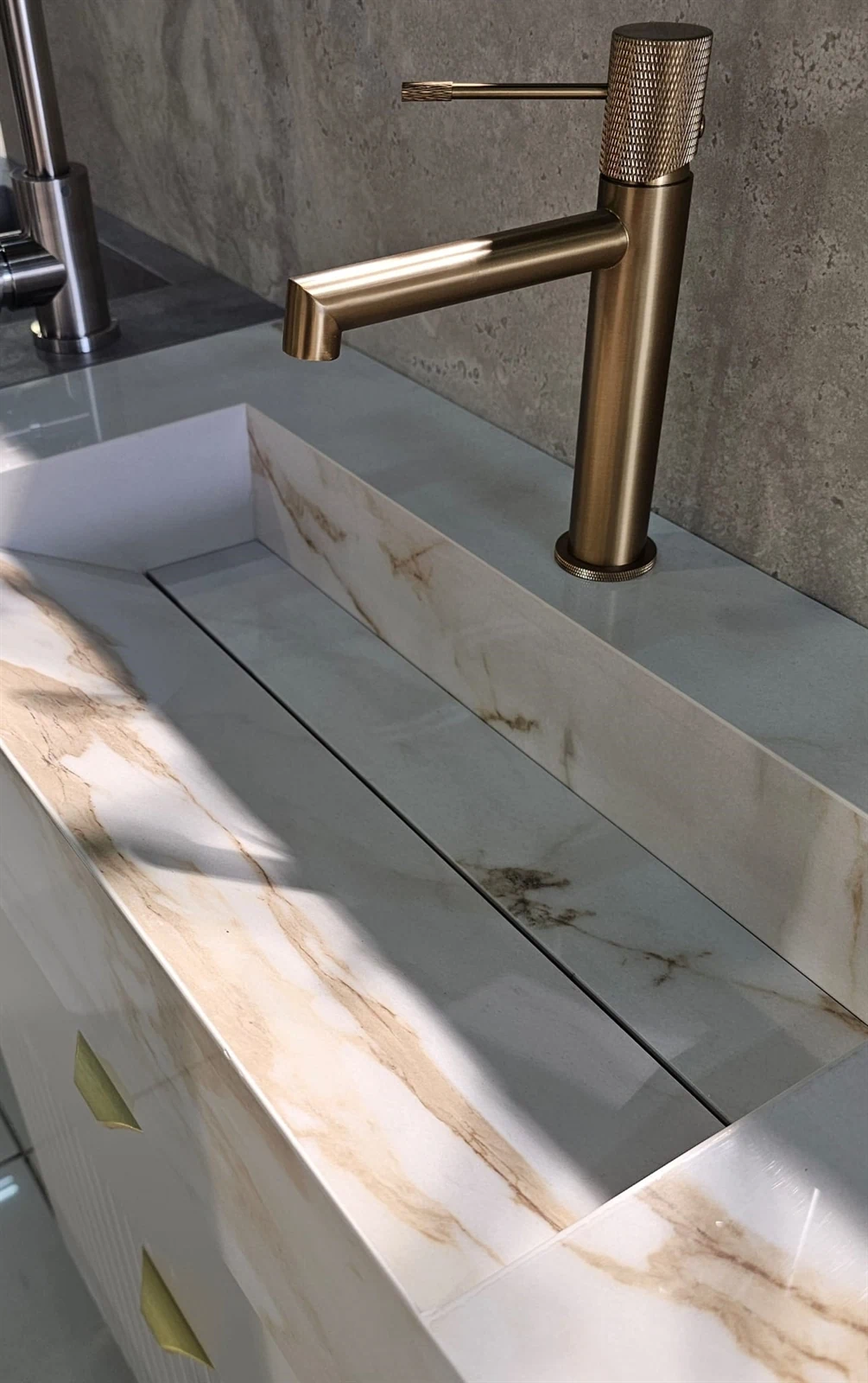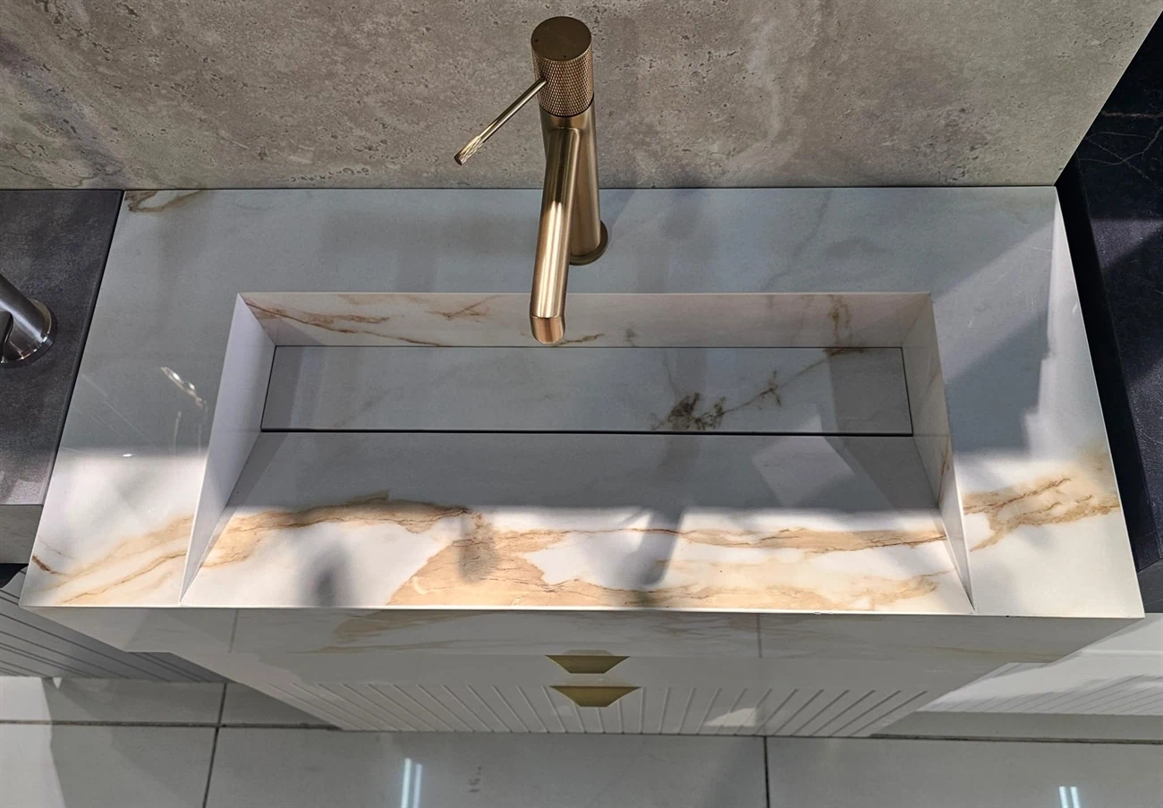 ⚫ כיור שוקת בנוי משיש פורצלן - בג' מבריק משויש ברונז