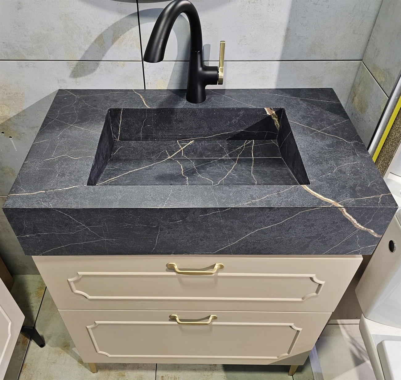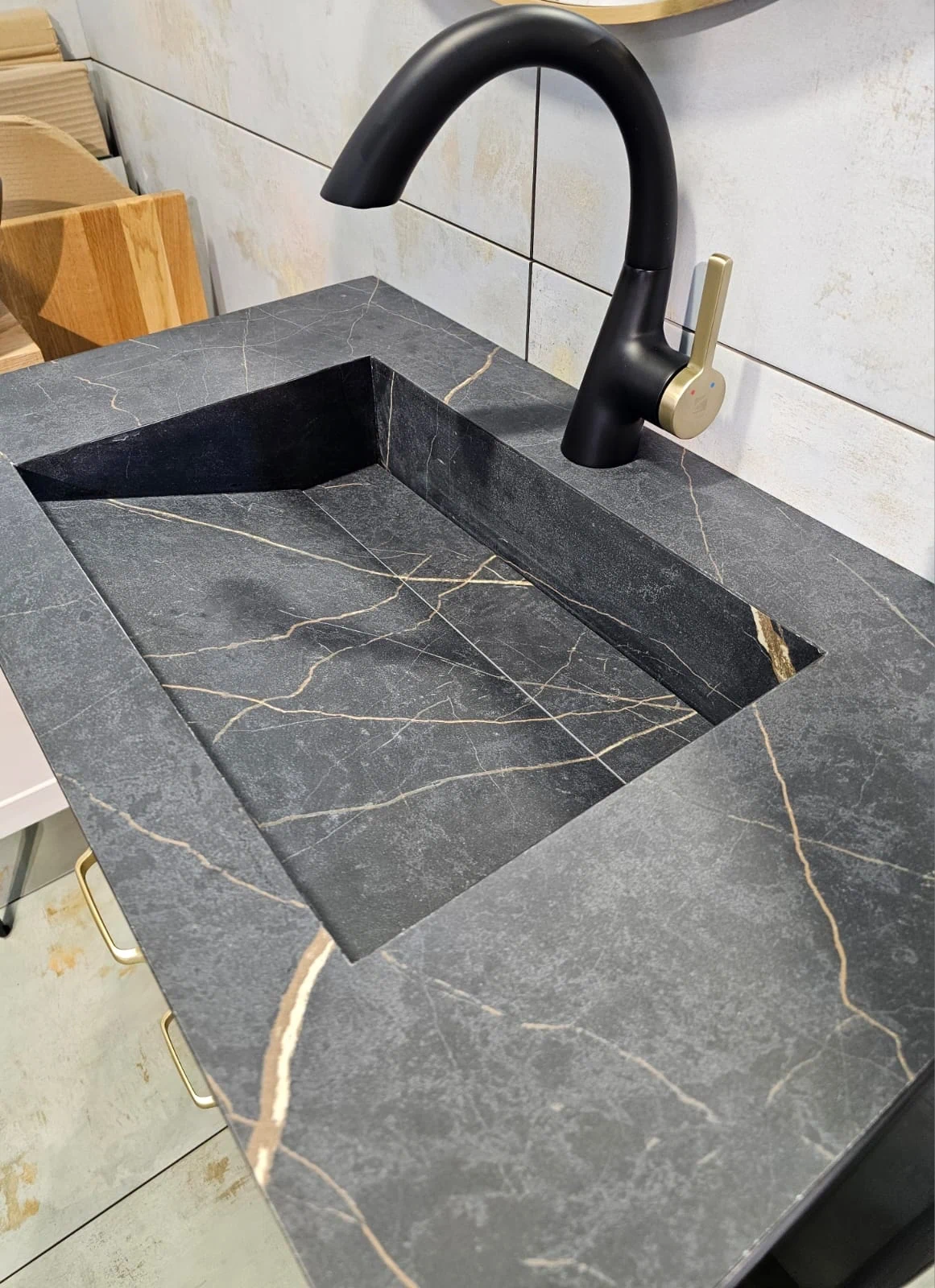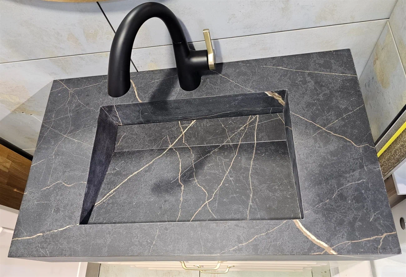 ⚫ כיור שוקת בנוי משיש פורצלן - שחור מט משויש זהב