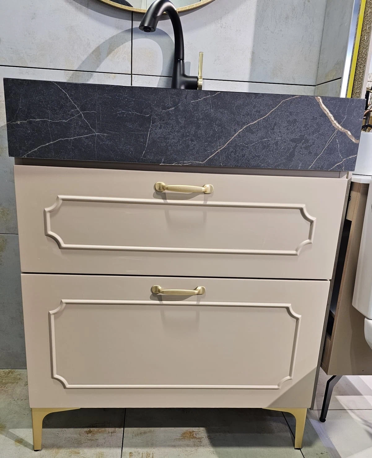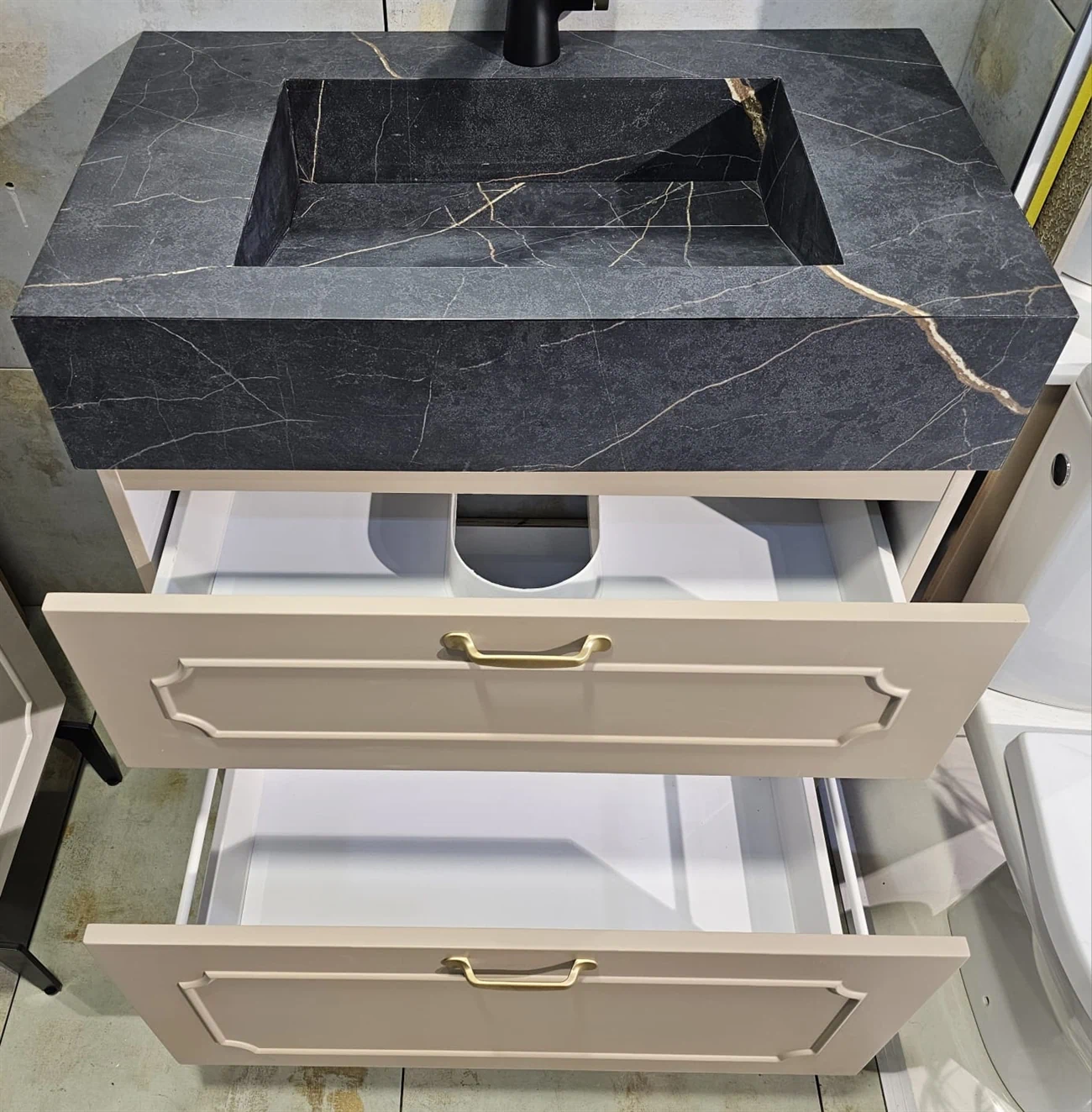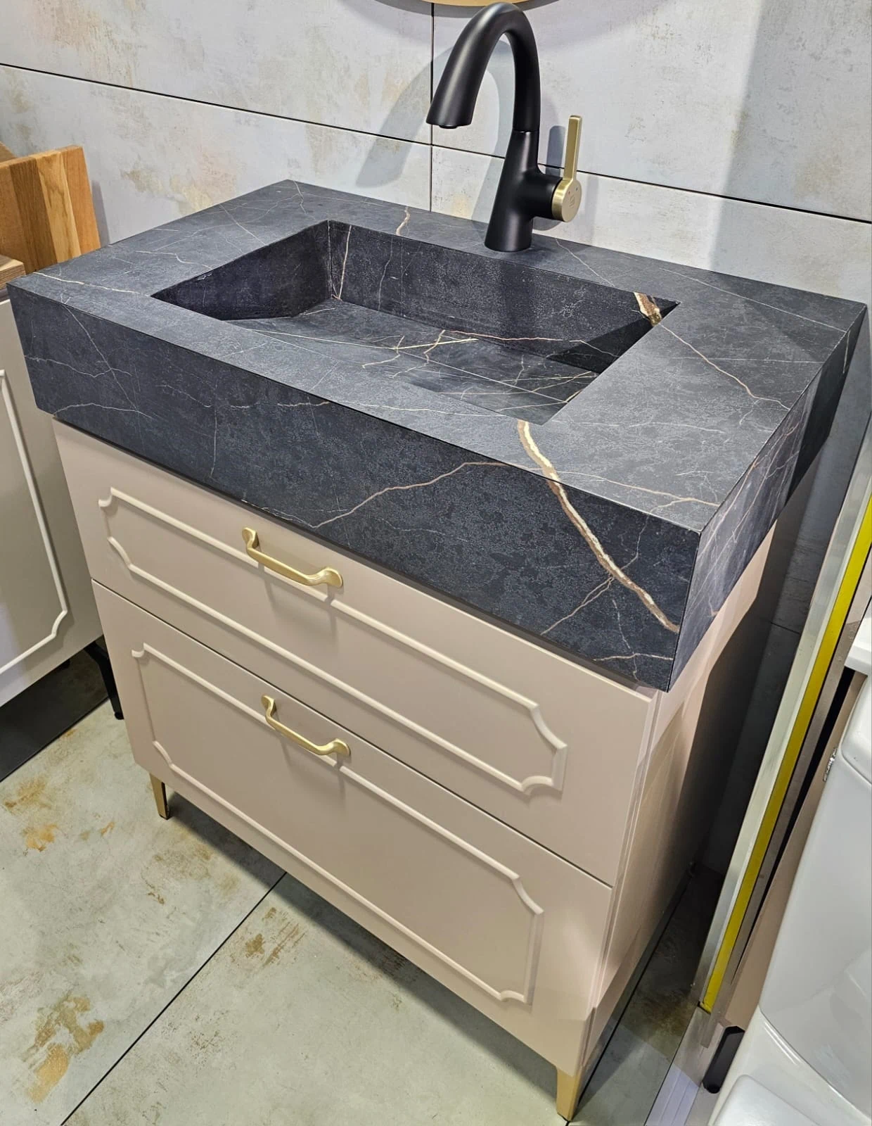 ⚫ כיור שוקת בנוי משיש פורצלן - שחור מט משויש זהב