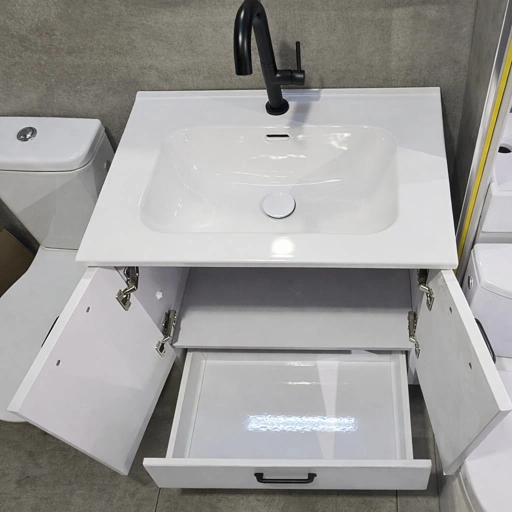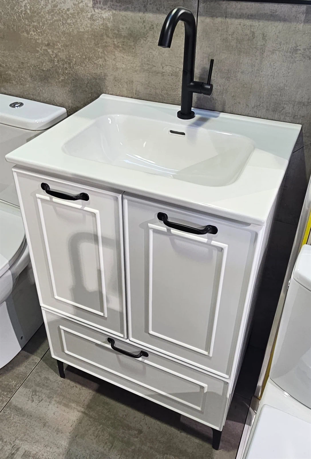 ⚫ כיור אינטגראלי חרס לבן רוחב 61 ס"מ עומק 47 ס"מ