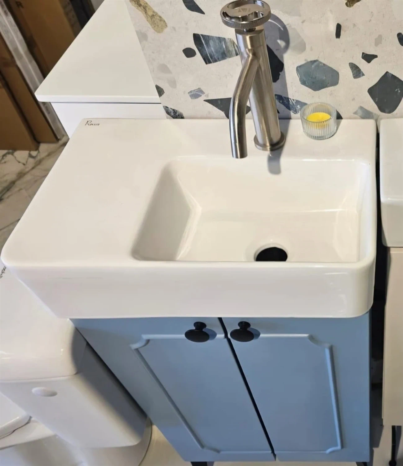 ⚫ כיור חרס לבן עם חור לברז + מתלה מגבת משמאל